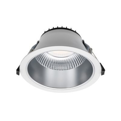 NDL190-A downlight med høj effektivitet og optimal varmestyring. Alsidig montering, planforsænket eller overflademonteret. UGR ?-19. CCT skift 3000/4000K.