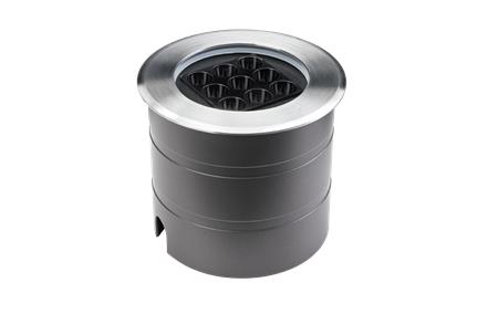 Kraftigt indbygningsarmatur til belysning af facader, vægge og haver. Godkendt til 750 kg belastning og med dybsorte reflektorer.