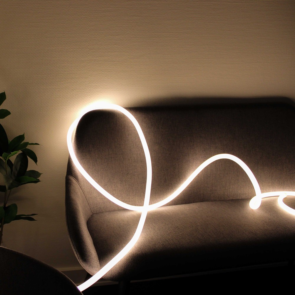 Dette 10 meter neon sæt er perfekt til indretning og skaber en hyggelig atmosfære med sin varme hvide LED strip. Sættet er designet til både privat og professionel brug, hvor fleksibilitet og æstetik er i fokus.