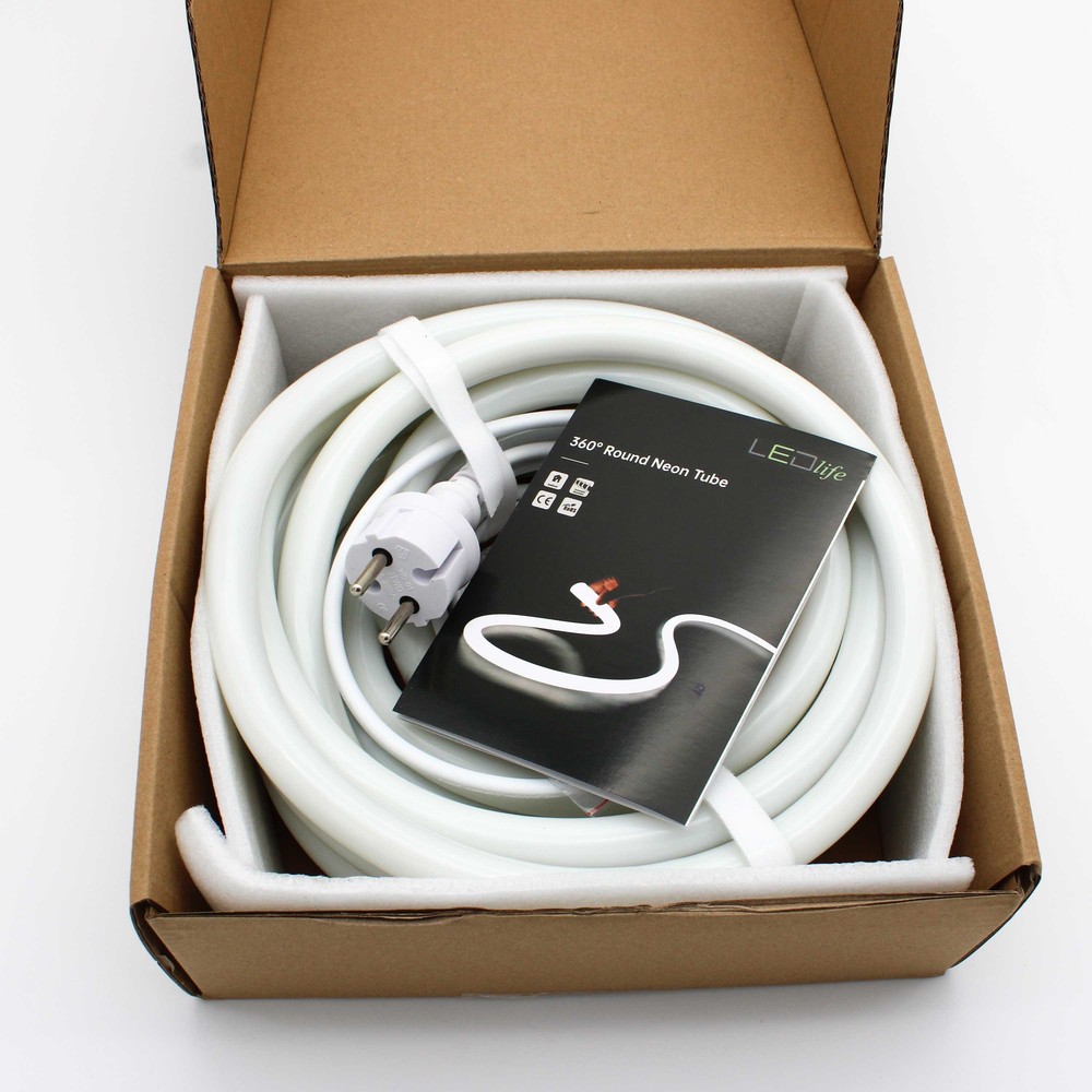 Neon indretningssæt, 5 meter, varm hvid LED strip, D16, 8W/m, 230V, 350lm/m, IP67