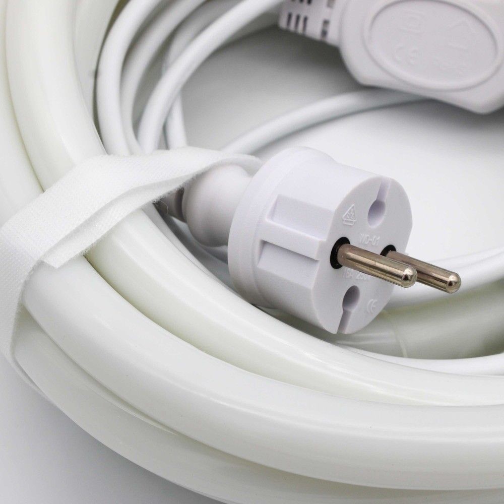 Neon indretningssæt, 10 meter, varm hvid LED strip, D16, 8W/m, 230V, 350lm/m, IP67