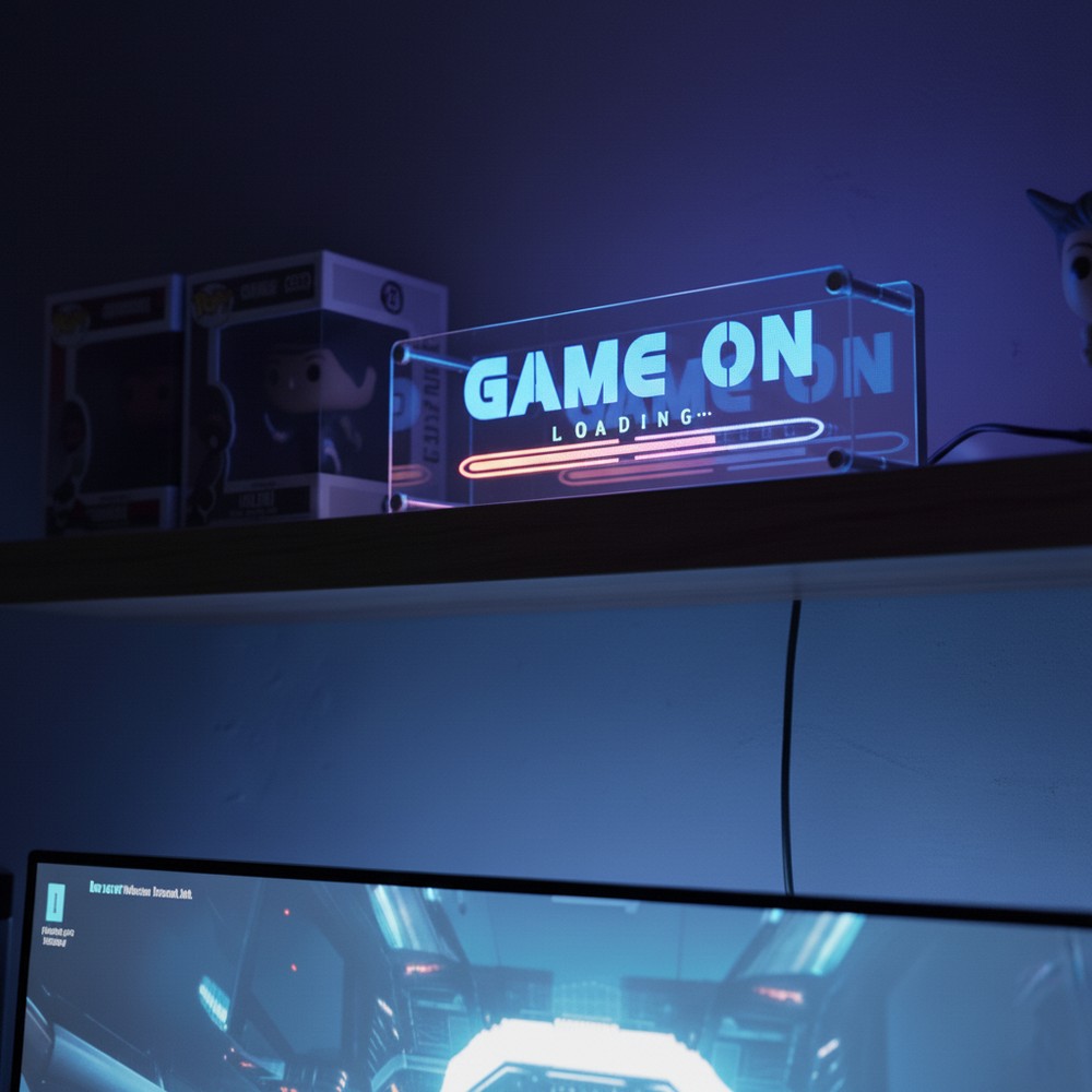 Giv din gaming-opsætning et unikt og dynamisk udtryk med dette RGB "Game On" neon skilt. Skiltet er designet med en imponerende Infinity Mirror effekt, der skaber en dybdeeffekt og får "Game On" budskabet til at fremstå levende og engagerende. Oplev et utal af farver og lysmønstre, der kan tilpasses din stemning og dit spil.