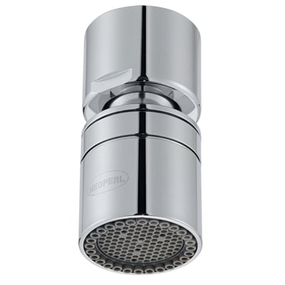 Omstillingsstråleregulator med kugleled. Forkromet. Ikke egnet til trykløse apparater.