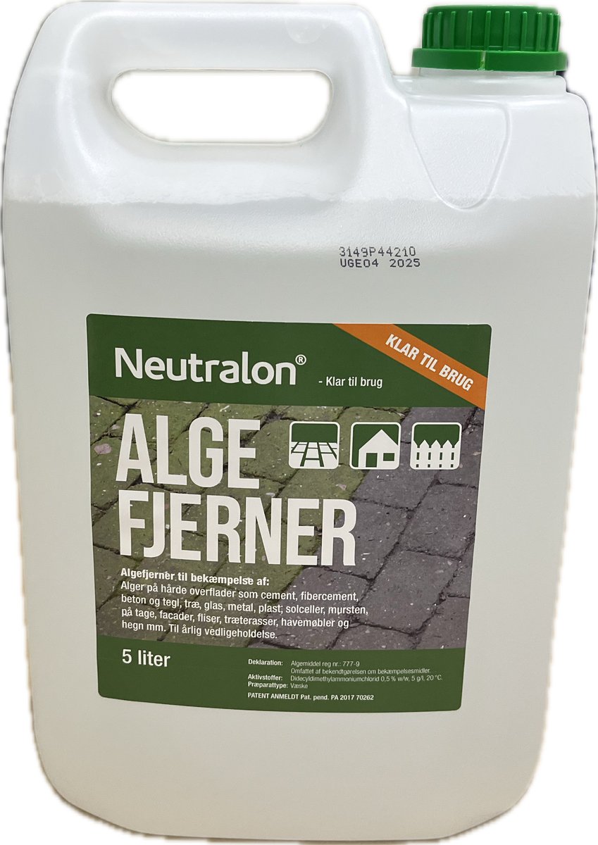 Neutralon Algefjerner er et brugsklart algemiddel, der effektivt bekæmper alger og belægninger på hårde overflader. Produktet er ideelt til udendørs brug på materialer som cement, fibercement, beton, tegl, træ, glas, metal, plast og PVC. Dette gør Neutralon algefjerner velegnet til behandling af tag, facader, fliser, hegn og andre udendørs konstruktioner, der er udsat for algevækst.