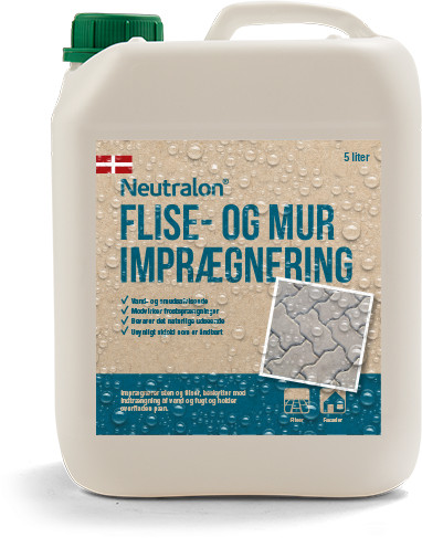 Neutralon flise- og murimprægnering i 5 liters dunk. Beskytter og vedligeholder nye og gamle sten og fliser i indkørsler og på terrasser. Kan også bruges på beton, puds og fibercement.