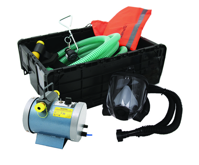 Drevet friskluft åndedrætsapparat system fra Centurion Safety. Leverer op til 500L/min frisk luft. Letvægts fuld ansigtsmaske med 9 m slange. Kan anvendes af 1 eller 2 brugere (op til 40 m med ekstra udstyr).