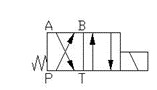 NG6 4/2 retningsventil med spole til 230VAC. Kapacitet: 80 l/min. Max tryk: 350 bar. Med DIN stik.