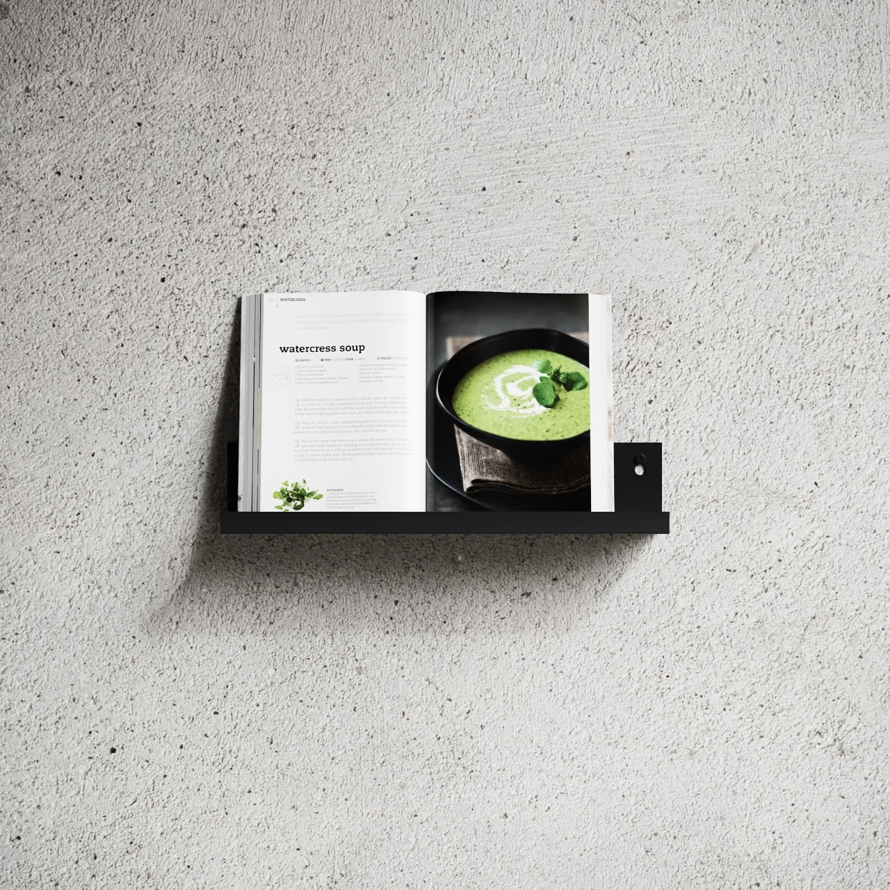 Denne L-formede hylde fra Nichba kombinerer funktionalitet med et minimalistisk design, der passer ind i ethvert moderne hjem. Hylden er fremstillet i robust stål med en mat pulverlakering i en elegant sort farve, hvilket sikrer både holdbarhed og et stilrent udseende.