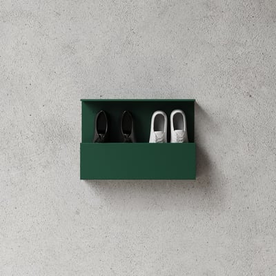 Nichba skohylde i grøn pulverlakeret metal. Væghængt model med en bredde på 50 cm.