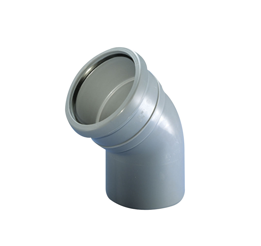 Grå Nicoll HT-PP (Amax Pro) afløbsbøjning med en diameter på Ø75 mm og en vinkel på 45°. Anvendes til afløbsinstallationer. Husk at bruge glidemiddel for korrekt samling.