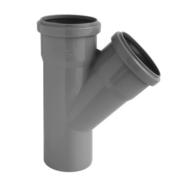 Nicoll HT-PP grenrør til indendørs afløbsinstallationer. Høj kemisk og termisk resistens. Dimension: Ø50 mm x 50 mm og 45 graders vinkel.