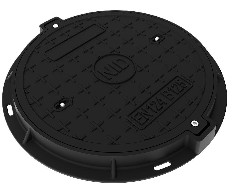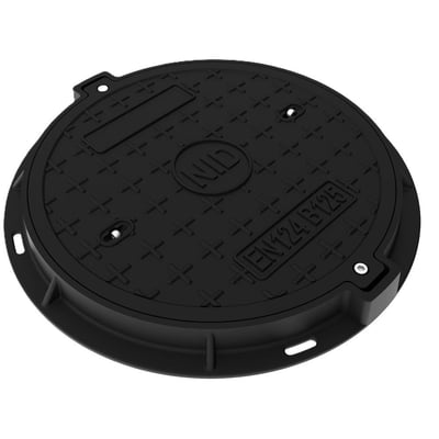 NID karm/dæksel i rund, fast komposit. Diameter 425 mm, belastningsklasse A15 (1,5 ton). Lugttæt.