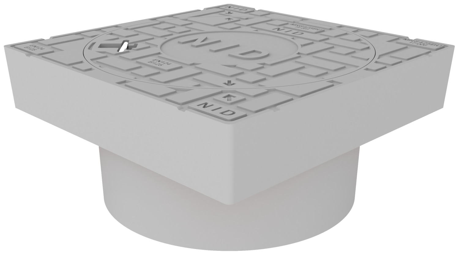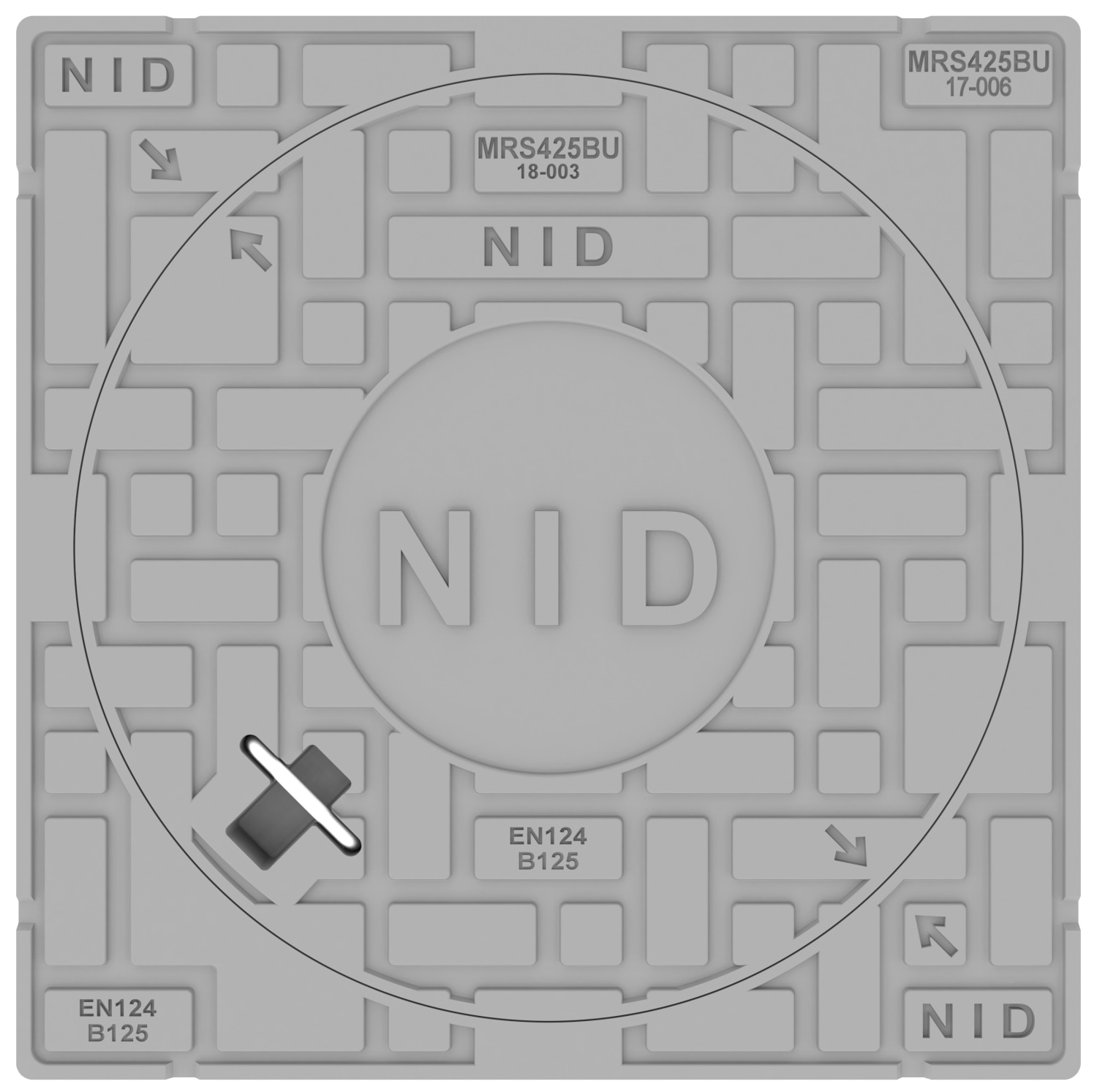NID 425 mm karm/dæksel til afløbsinstallationer. Uden lås, firkantet design, fast montering, 12,5 tons belastningsevne, i grå komposit.