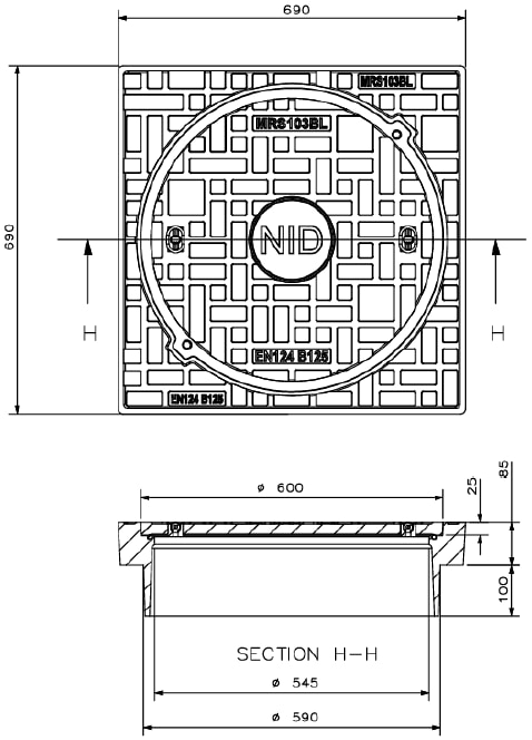 NID 600 mm karm/dæksel m/lås