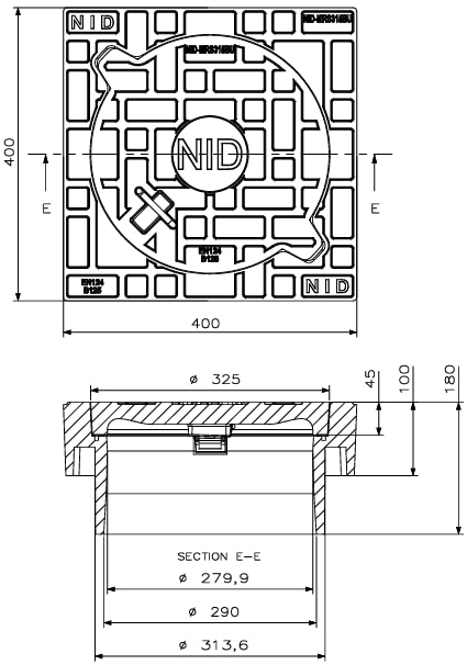 NID karm/dæksel til 315 mm rør