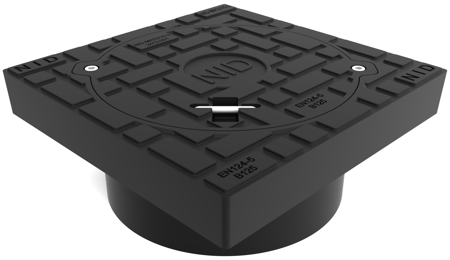 NID 315 karm/dæksel med lås, firkantet, fast, 12,5 t, fremstillet af komposit.