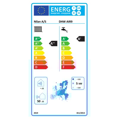 Via den yderst energieffektive og lydsvage luft-til-vand varmepumpe AIR9 producerer DHW AIR varmt brugsvand samt rumopvarmning til boligens radiatorer.