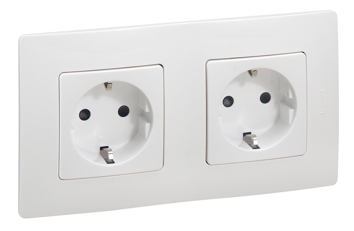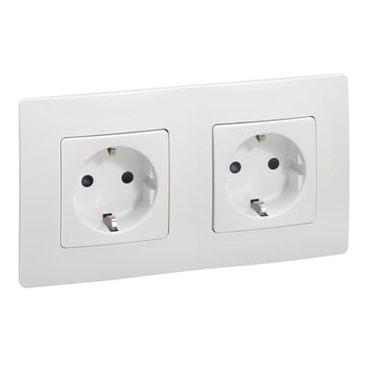 Dobbelt stikkontakt fra Niloé serien. Denne model er med tysk standard og er udført i hvid.