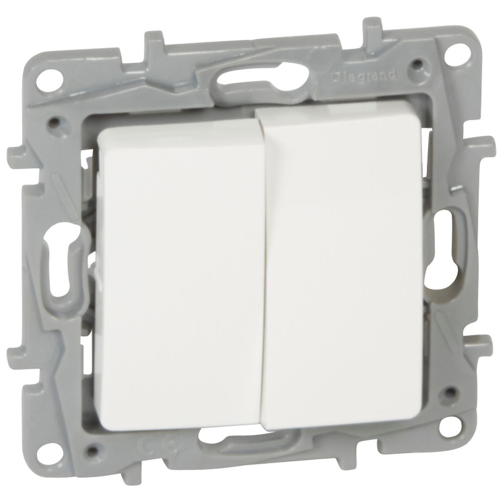 Dobbelt trykkontakt 6A og korrespondanceafbryder 10A fra Niloé i hvid. Kan anvendes som: