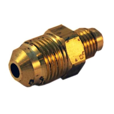 Nippel UR2-0064 med udvendige 3/8" og 1/4" flare gevind, ideel til sammenkobling af rør med forskellige dimensioner.