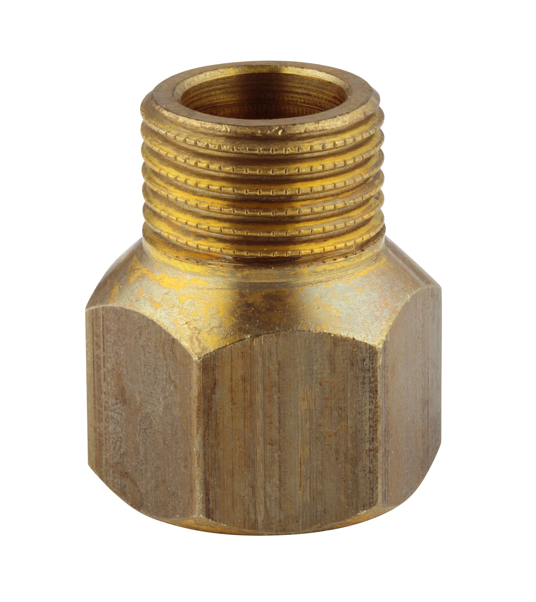 Grohe reduktionsgevind af messing. Bruges til at forbinde rør med forskellig gevindstørrelse.