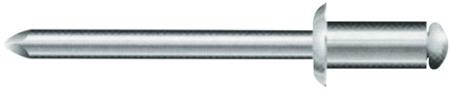 Blindnitter i rustfrit stål (A2) med en diameter på 4,8 mm, længde 16 mm, og krave på Ø9,5 mm. Til emner med tykkelse 10-12 mm. Pakke med 250 stk.