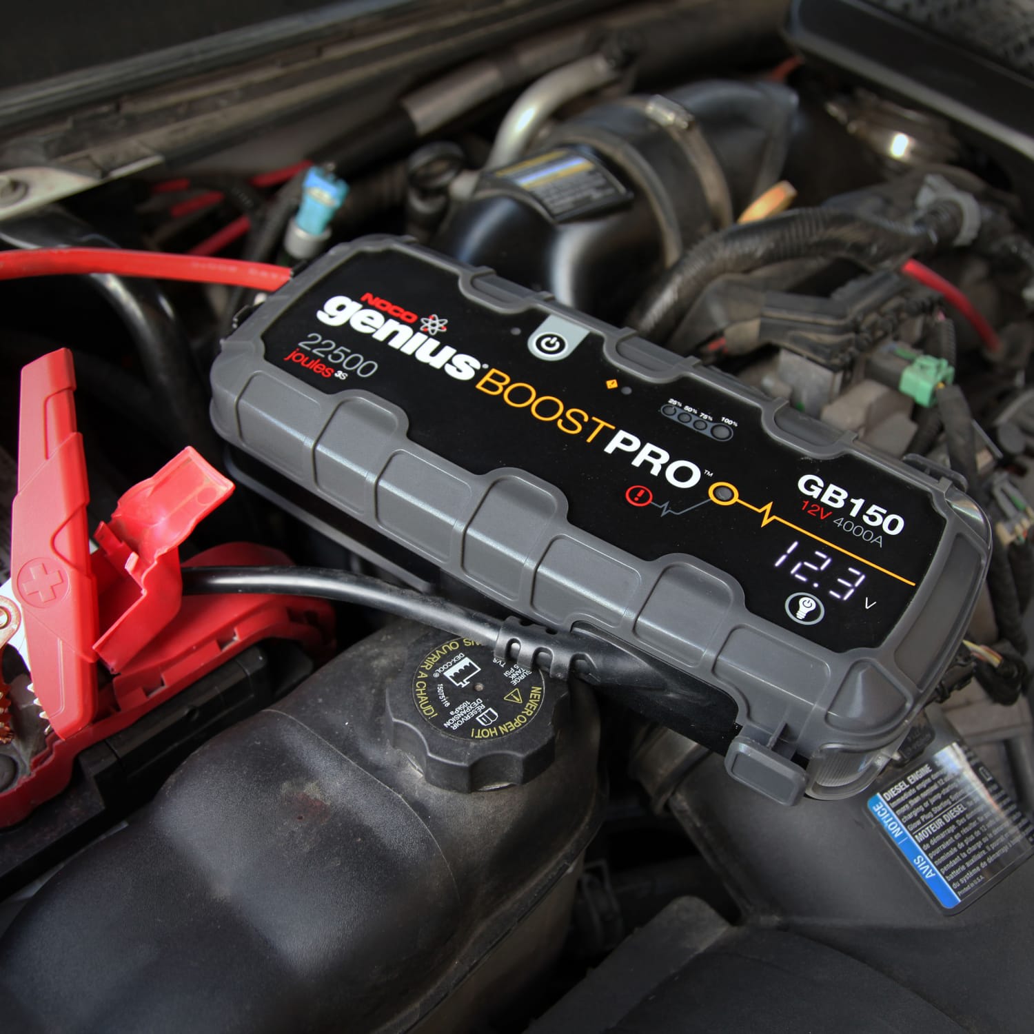 Noco Genius GB150 Boost Pro er en lithium-ion jumpstarter, der leverer 4000 A. Den kan starte et dødt batteri på få sekunder og er udstyret med sikkerheds teknologi.