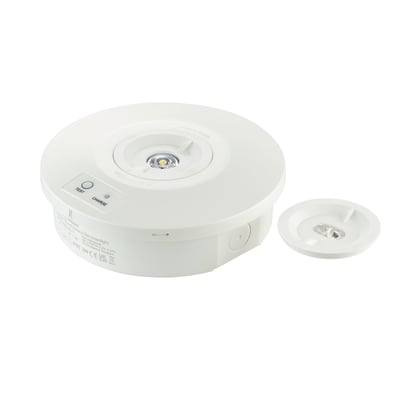 Denne nødbelysnings-downlight er designet til påbygning og sikrer pålidelig belysning i nødsituationer. Med en effekt på 2W og en lysstrøm på 273lm giver den tilstrækkelig belysning i 3 timer ved strømsvigt. Den er IP65-klassificeret, hvilket gør den egnet til indendørs brug.