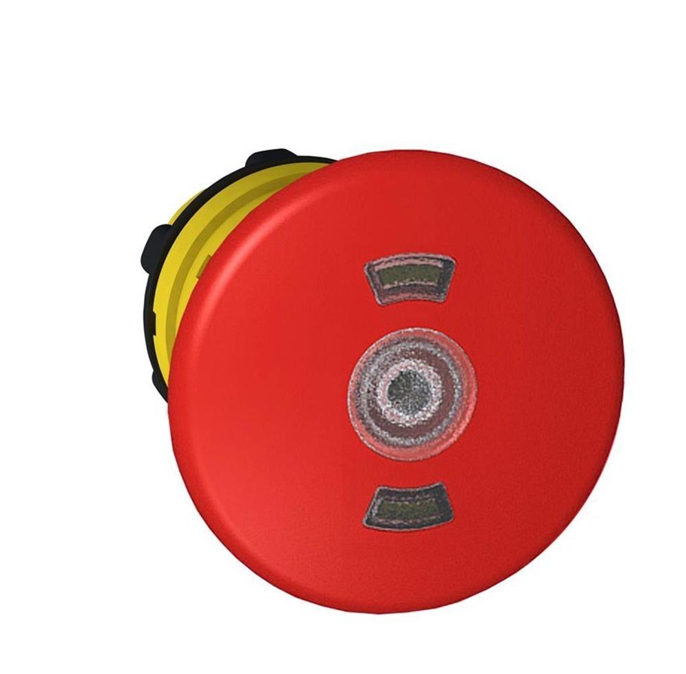 Harmony Style 5 nødstopshoved (XB5-serie) med Ø40 mm paddehoved i rød plast. Designet til tryk-træk betjening og LED-indikator.