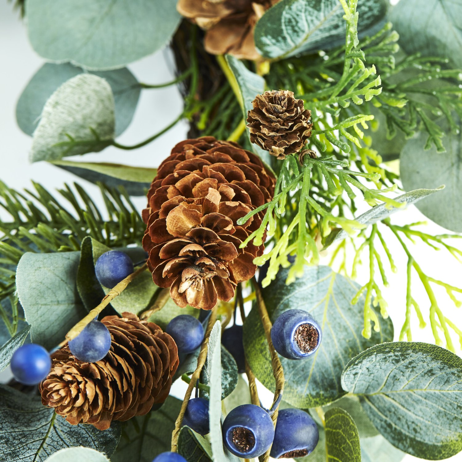 Denne smukke blåbærkrans fra Nordic Winter er den perfekte måde at bringe julestemningen ind i dit hjem. Med en diameter på 50 cm er den ideel til at hænge på døren, over pejsen eller som en del af din borddekoration.