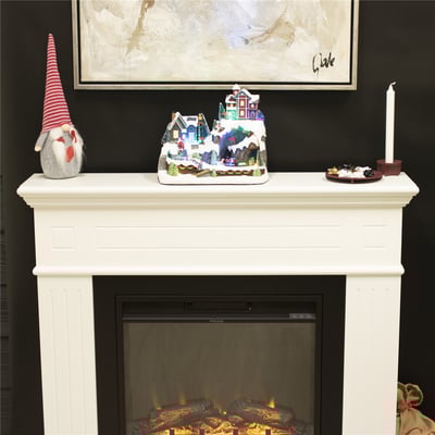 Julebyen er udstyret med indbygget, ikke-udskiftelig LED-belysning, der afgiver farvet lys, hvilket fremhæver de mange detaljer i landskabet. En integreret musikfunktion bidrager yderligere til den festlige stemning. Med en dimension på 31 cm i bredden, 21 cm i dybden og 26 cm i højden er "Mountain Town" velegnet til placering på hylder, borde eller i vindueskarme.