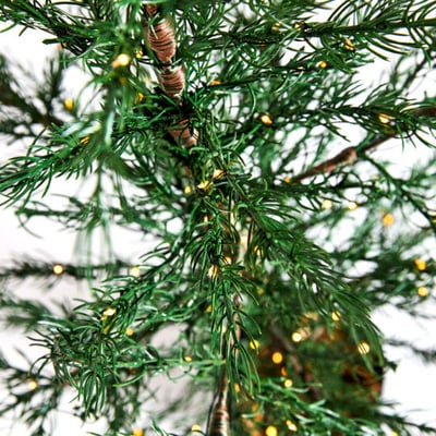 Cedertræet er udstyret med 140 varm hvide LED-lys, der giver et behageligt og stemningsfuldt lys. Den 3 meter lange tilslutningsledning gør det nemt at placere træet, hvor du ønsker det.