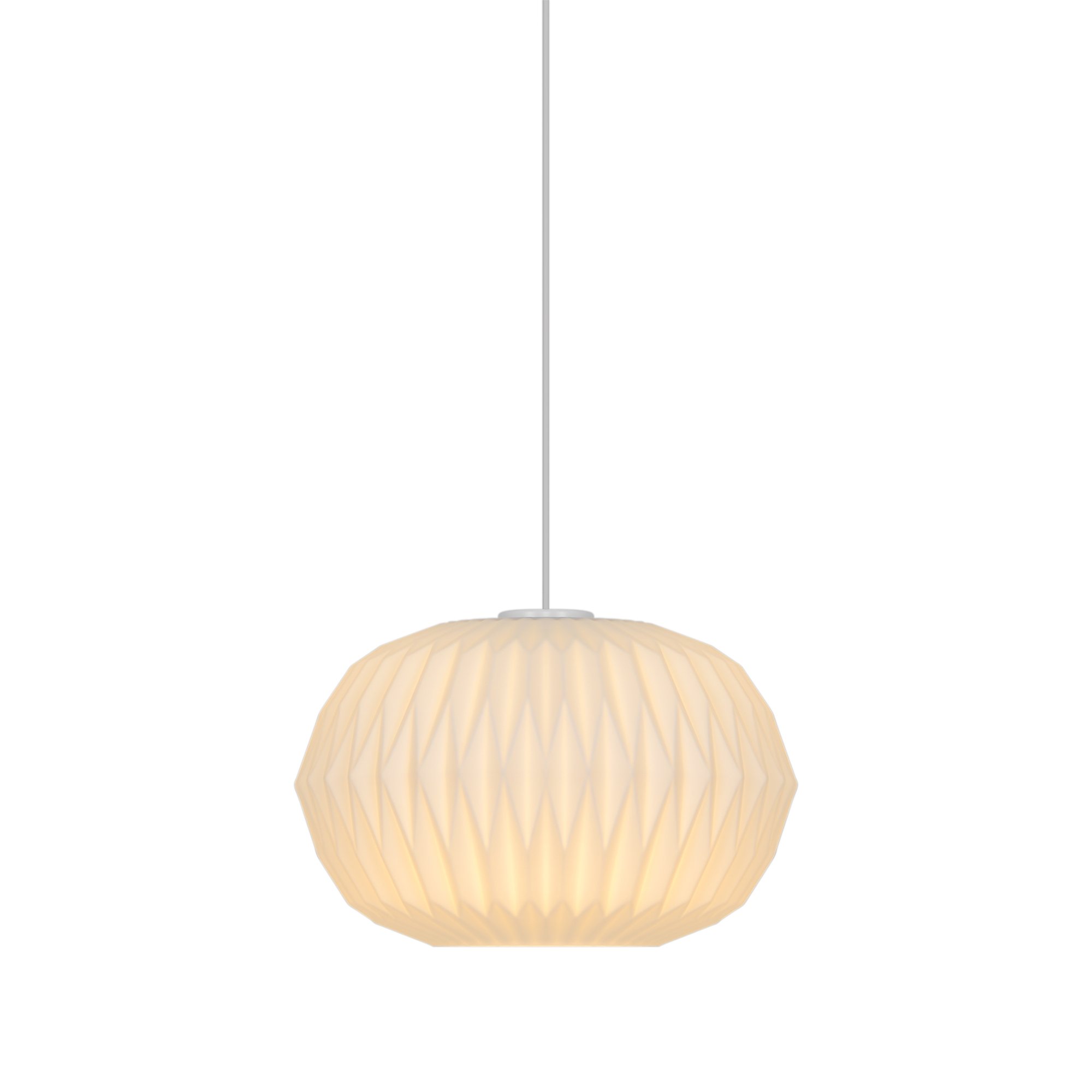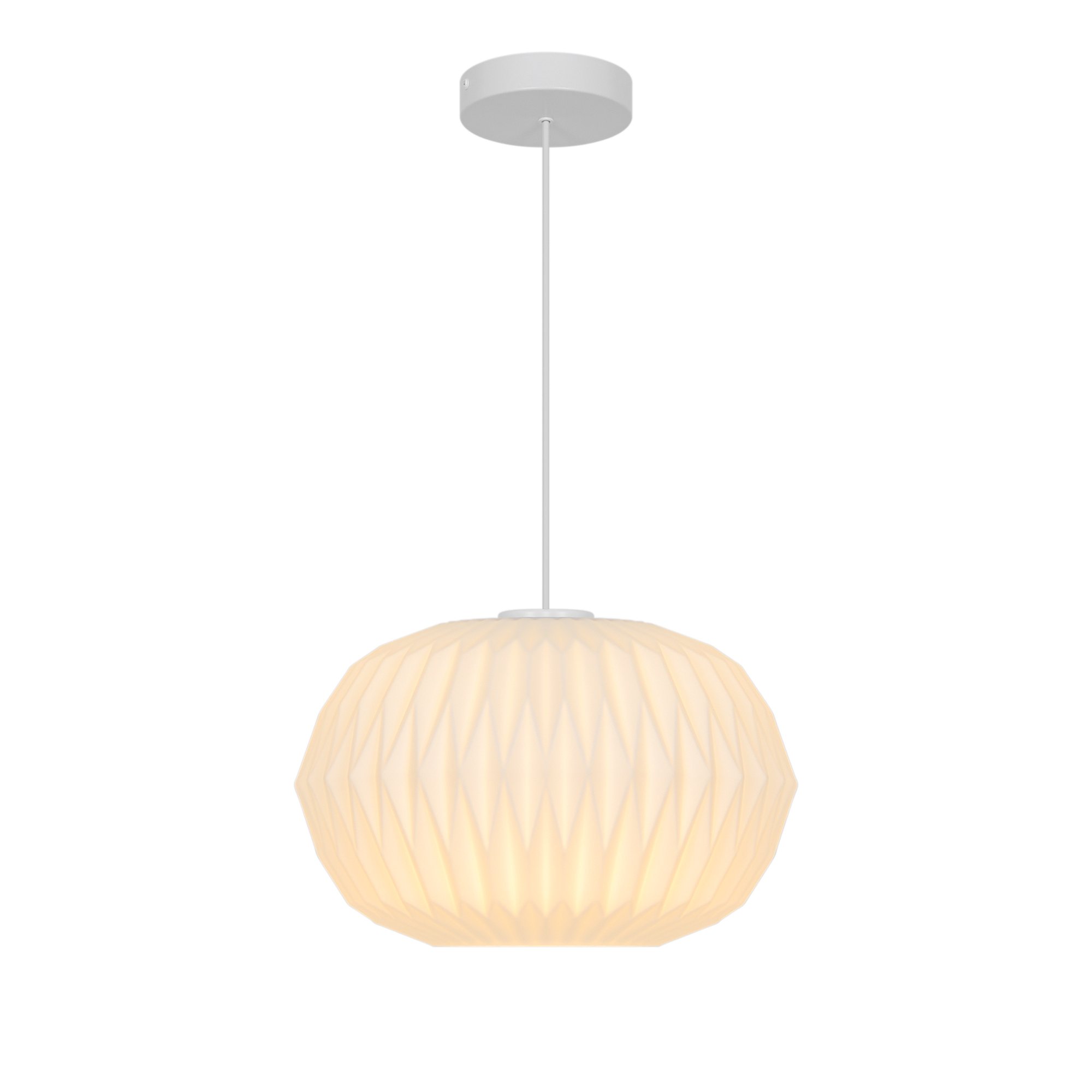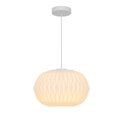 Stilfuld Aviana pendel i opal hvidt glas med E27 sokkel. Diameter på 30 cm og højde på 21 mm. Kan dæmpes med egnet pære.
