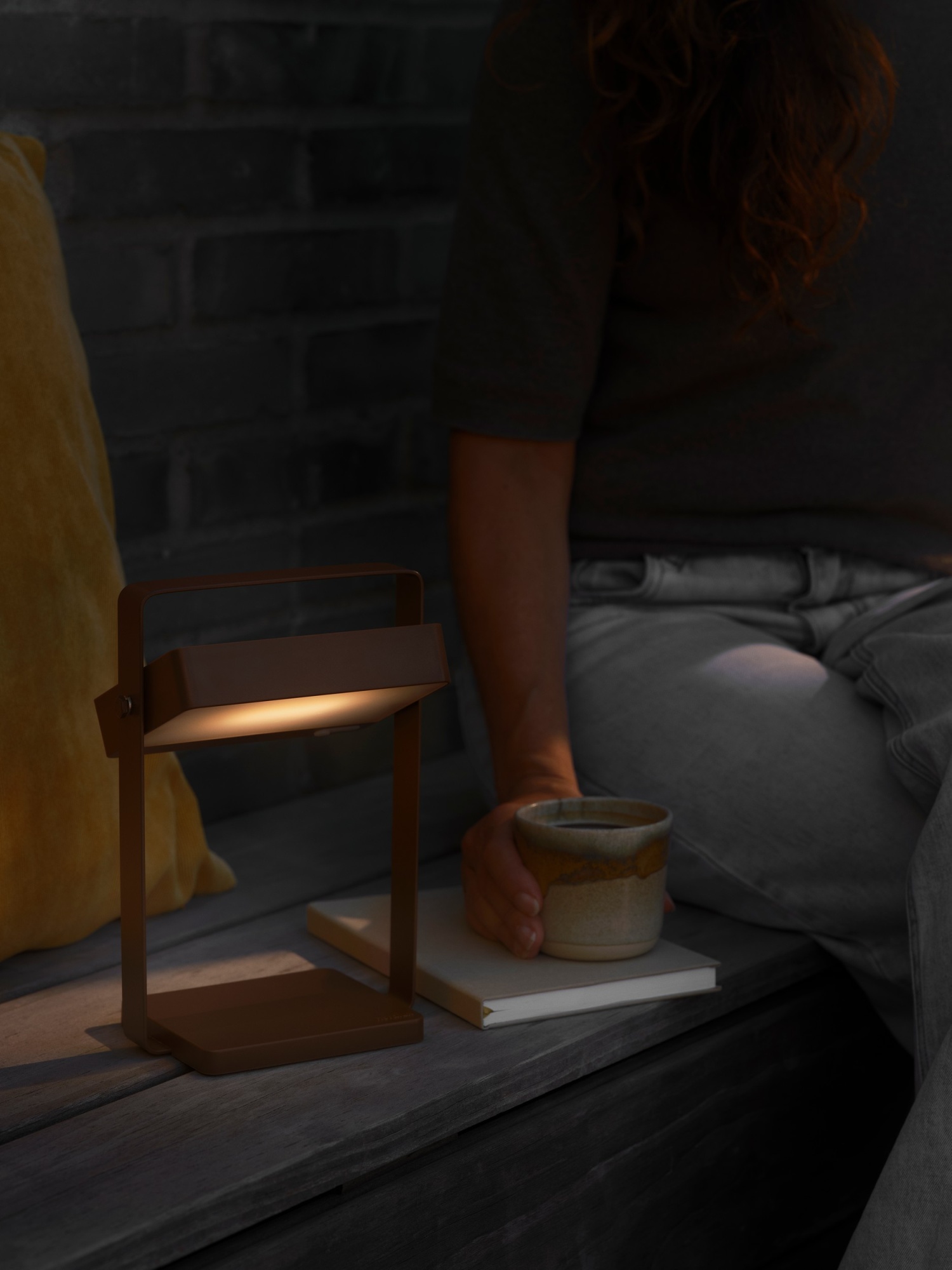 Med Saulio batterilampen er du ikke bundet af stikkontakter. Den trådløse funktion giver dig frihed til at placere lampen præcis, hvor du ønsker – det kan være på et sidebord, en hylde, i entréen eller som stemningsbelysning på terrassen (under overdækning). Den er nem at flytte rundt efter behov og giver øjeblikkelig belysning uden besvær.