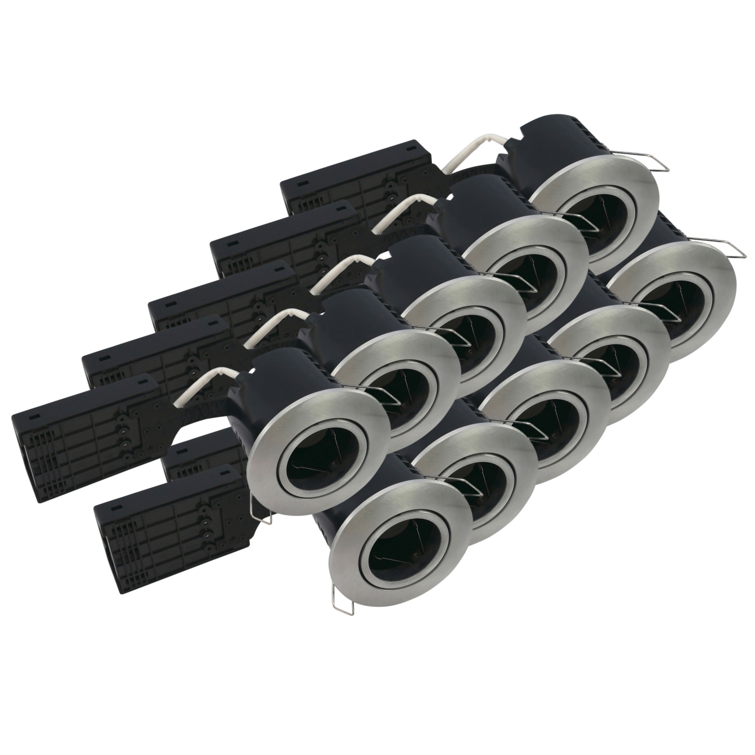 Nordtronic Fast Install ECO indbygningsspot, 10 stk/pakke, GU10, rund, børstet aluminium