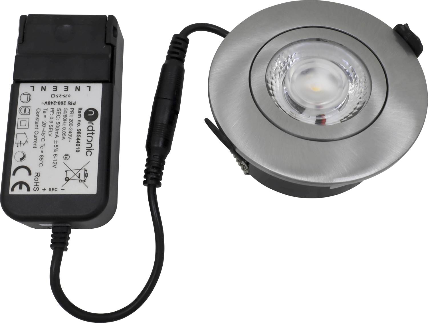 Nordtronic Low Profile Flexible G2 indbygningsspot Ø55 - 2700K, 270lm, inkl. driver, Børstet alu / IndendørsPå lager- Varenr.:35511022