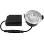 Nordtronic Low Profile Flexible G2 spot i børstet aluminium med 55mm hulmål og 3000K farvetemperatur.Tilslutningsboks til Nordtronic Low Profile Flexible G2 spot med markeringer for DC IN og DC OUT.