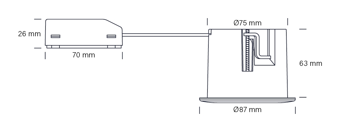 • Udvendigt mål: Ø87 mm