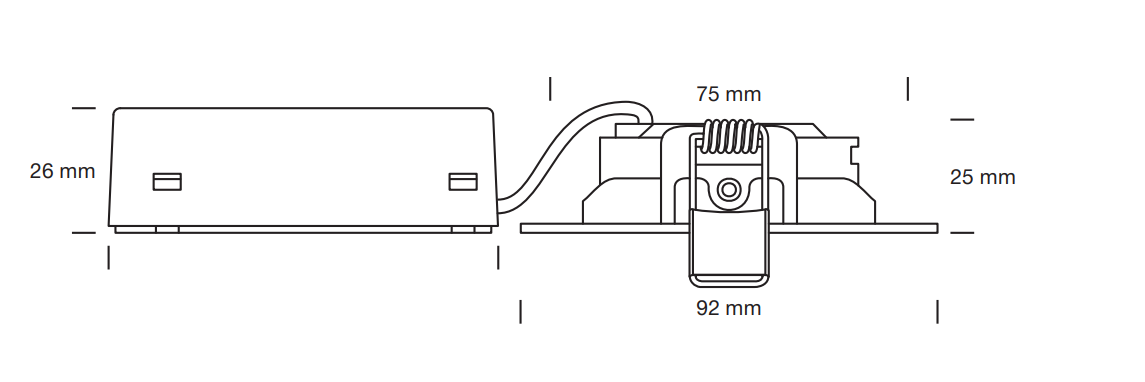 Lav indbygningshøjde: Med en højde på kun 25 mm passer spottet perfekt til områder med begrænset plads over loftet.