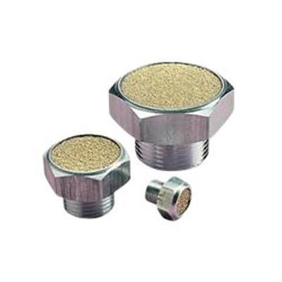 Effektiv lyddæmper til pneumatisk udstyr. Kompakt, flad model der skrues direkte i afblæsningsporten og forhindrer snavs.