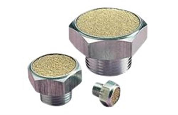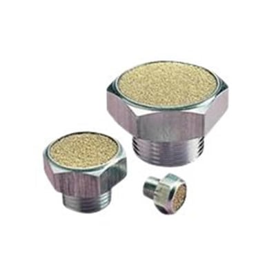 Effektiv lyddæmper til pneumatisk udstyr. Kompakt, flad model, der skrues direkte i afblæsningsport. Forhindrer snavs i at trænge ind.