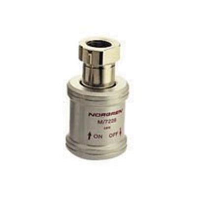 Norgren M/7328 afspærringsventil med skydeprincip for hurtig afluftning af cylinder og beholder. Enkel og pålidelig 3/2 funktion med åben afblæsning.
