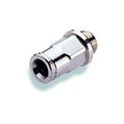 Pneumatisk lige indskruningsnippel i forniklet messing. Sikrer fastholdelse under belastning og er korrosionsbestandig.