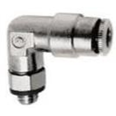 Pneufit 10 PUSH-IN vinkel indskruning vridbar nippel messing, forniklet Gevind 1/8" Udv. slangediameter 10mm.