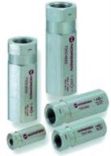 Pålidelig kontraventil i aluminium med rustfri fjeder og nitril pakning. Tillader fri gennemstrømning i én retning ved et åbningstryk på 0,1 bar. Siliconefri.
