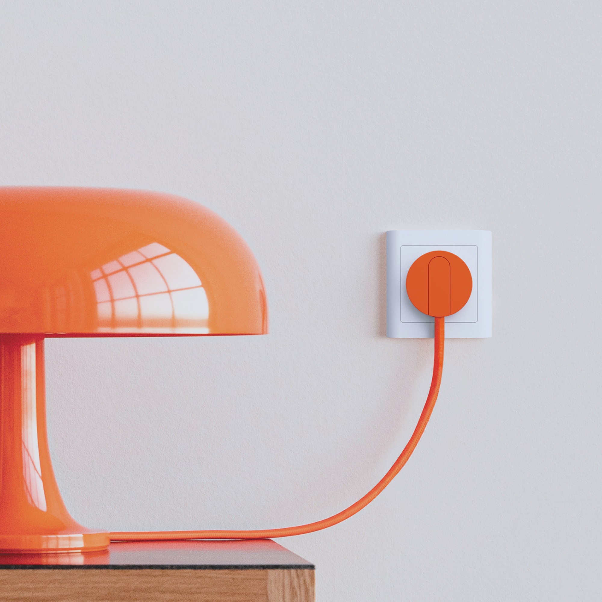 Denne stikprop i varm orange giver dig mulighed for at sætte et personligt præg på dine elinstallationer, især hvor stikket typisk er noget, man helst skjuler.