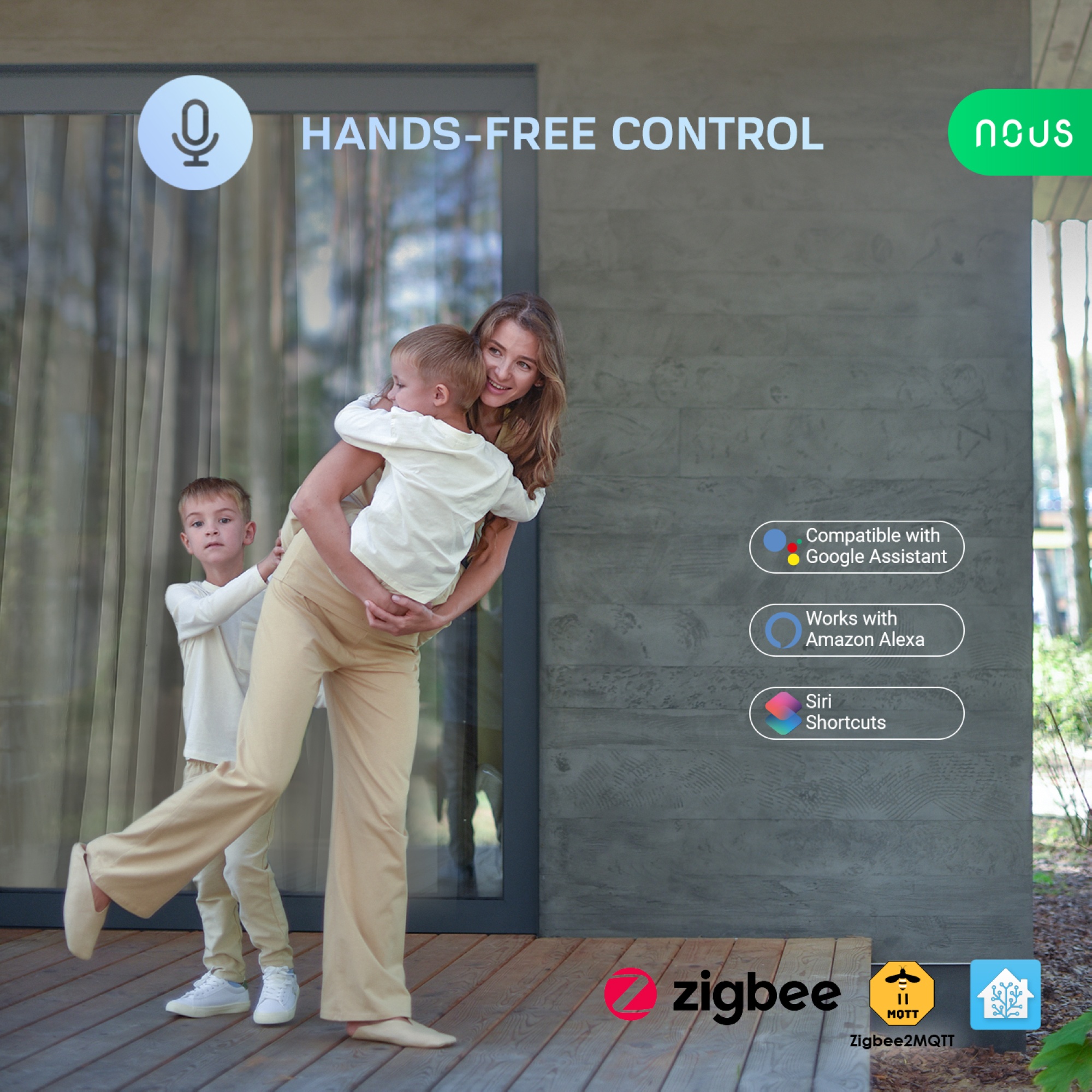 Denne smarte stikdåse bruger Zigbee-protokollen, hvilket sikrer en stabil og pålidelig forbindelse til dit smart home-system. Du kan nemt styre de to udtag individuelt via din smartphone eller tablet, uanset hvor du er.