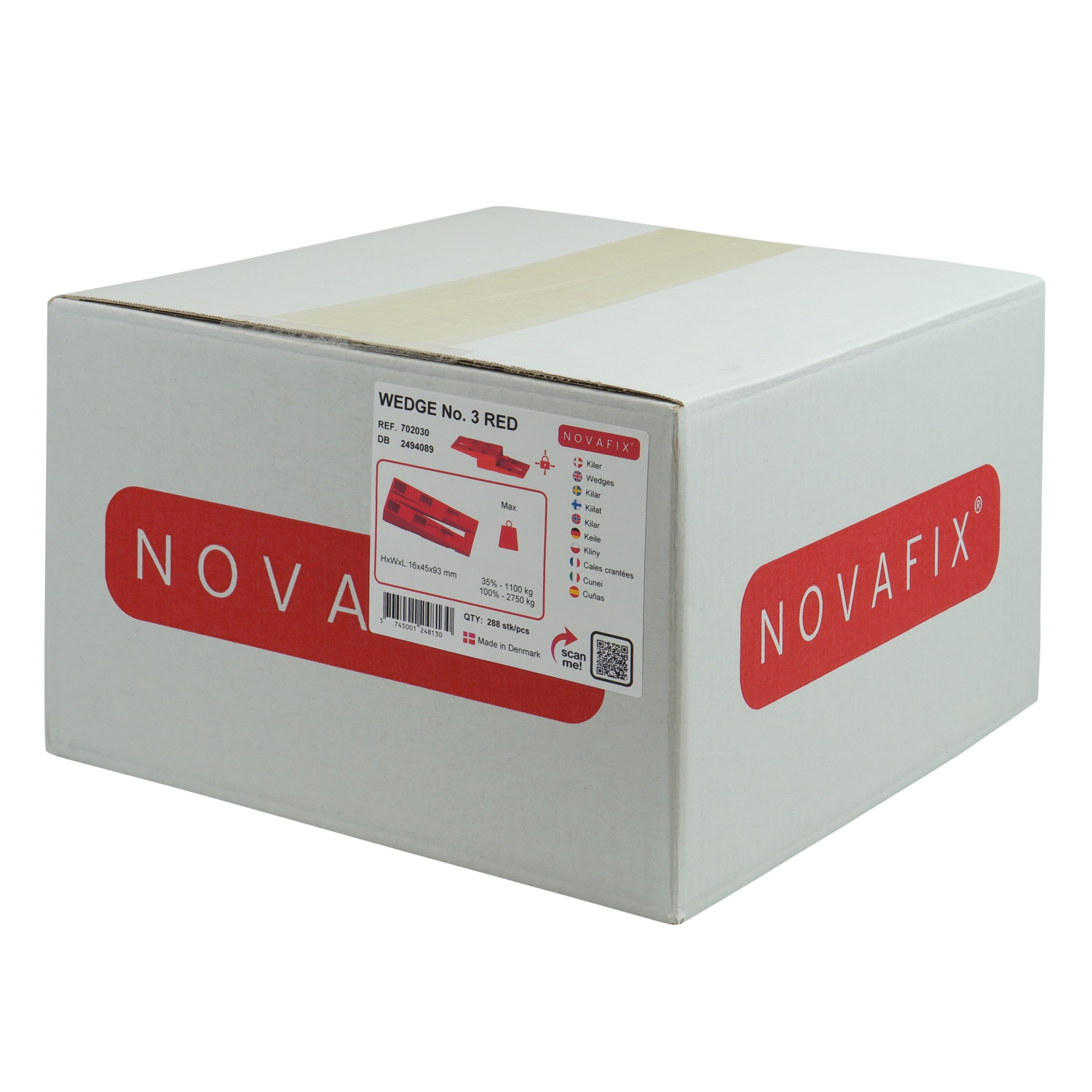 Novafix kile 3 rød, dimensioner H16 mm x B45 mm x L93 mm. Leveres med 288 stk i papkasse.