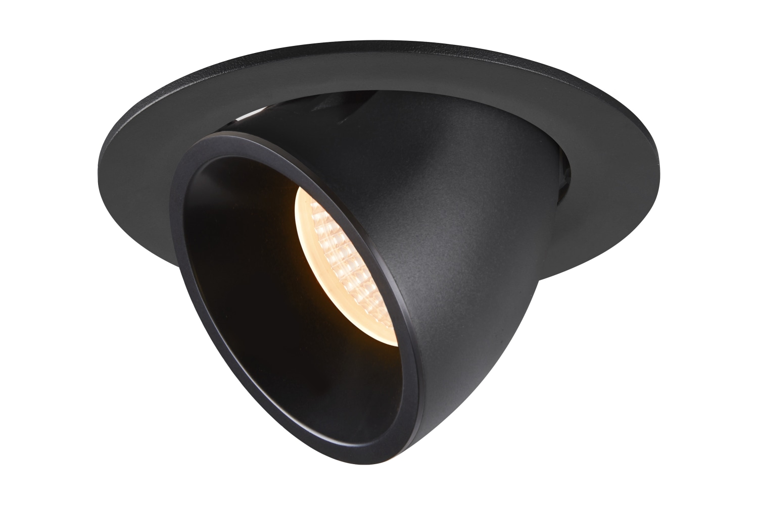 NUMINOS® GIMBLE L er et sort loftindbygningsspot med en farvetemperatur på 2700 K og en lysspredning på 20°. Perfekt til målrettet belysning.