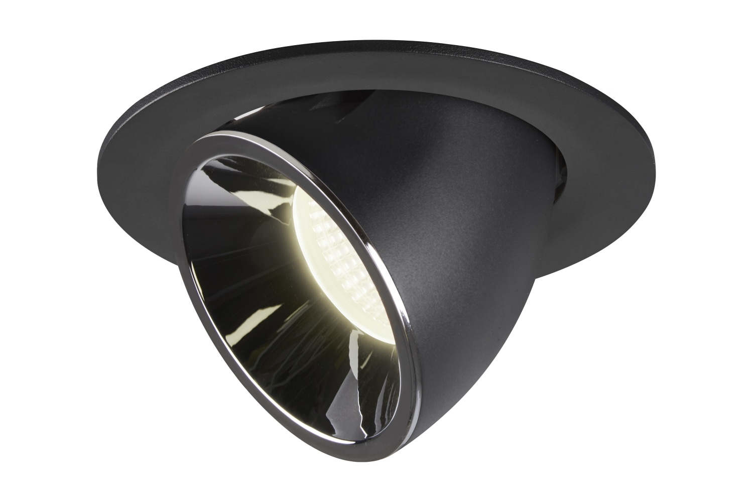 NUMINOS® GIMBLE L er et loftindbygningsspot i sort/krom med en farvetemperatur på 4000 K og en lysspredning på 40°.